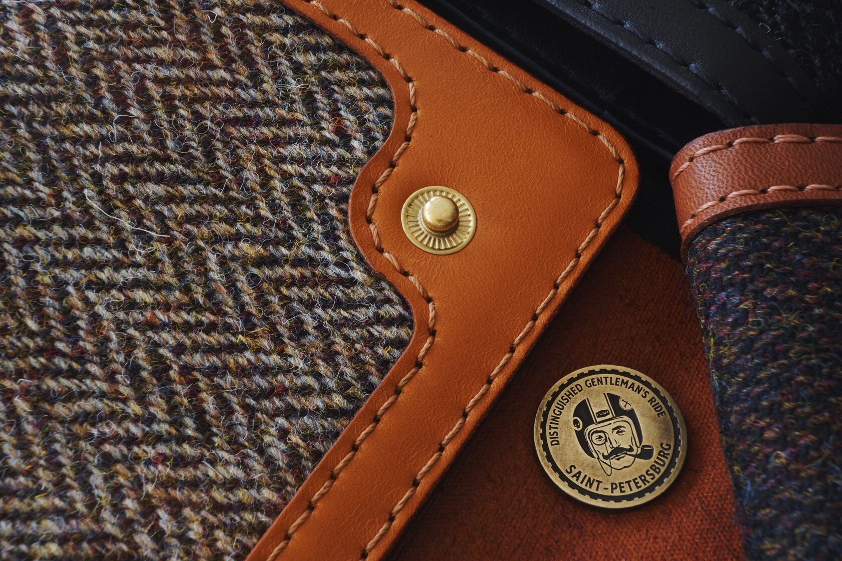 Уже третий год мы готовим от мастерской призы для участников. В этом году для достопочтенных леди и джентльменов, мы подготовили несколько обложек для документов из кожи full grain, со вставками аутентичного твида "Harris Tweed", вручную сотканного на Внешних Гебридских островах к западу от Шотландии.