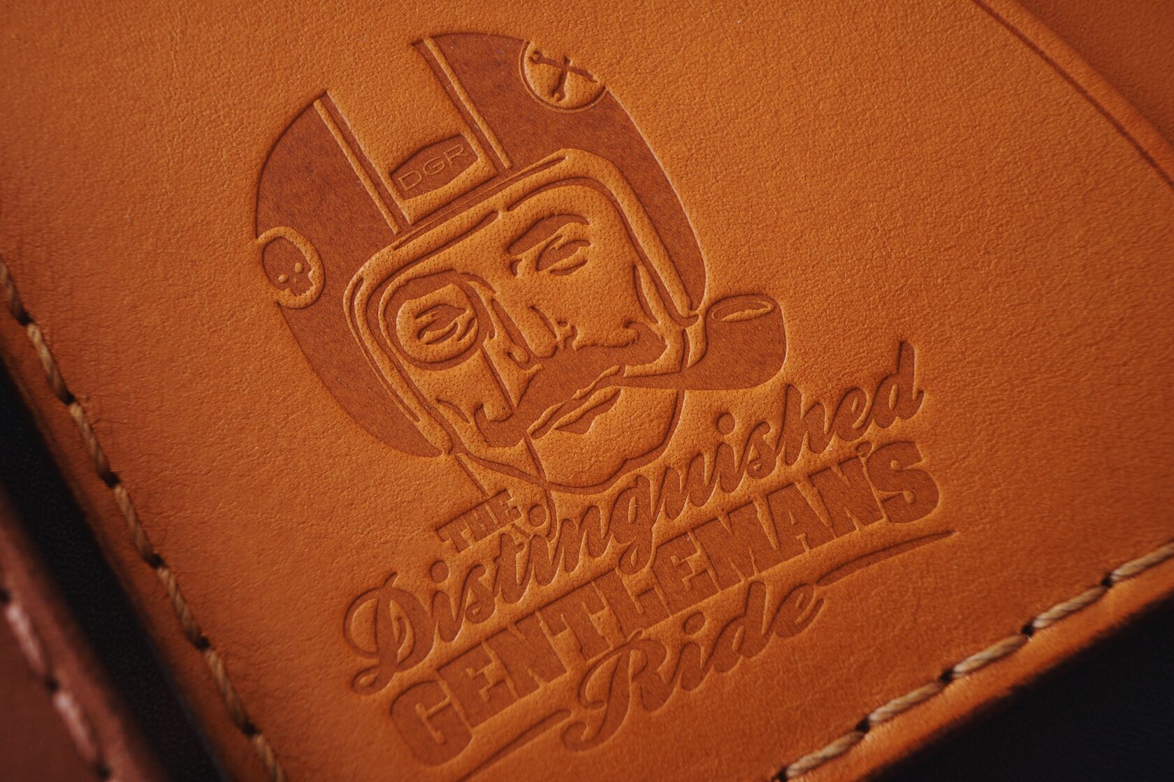 Неотъемлемая часть - логотип Gentleman's Ride, который мы нанесли на кожу классическим горячим тиснением.